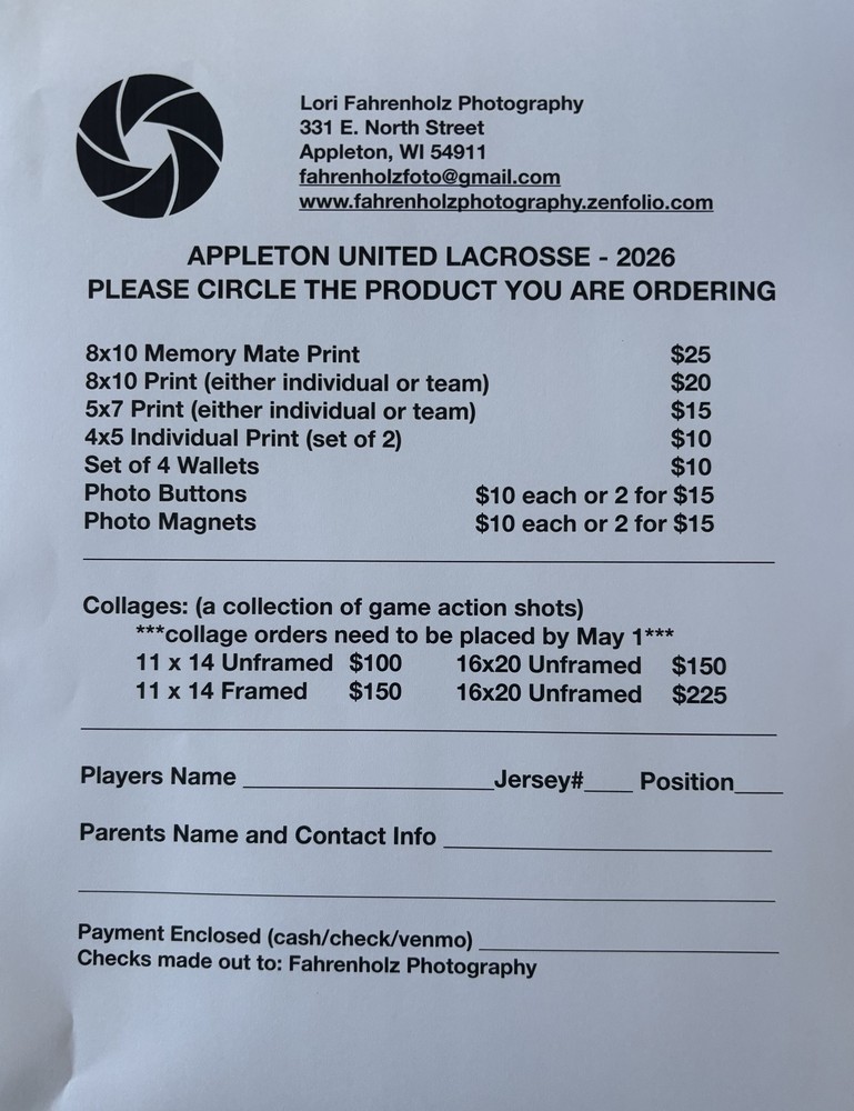 Picture order form for Lori Fahrenholz. Venmo @Lori-Fahrenholz